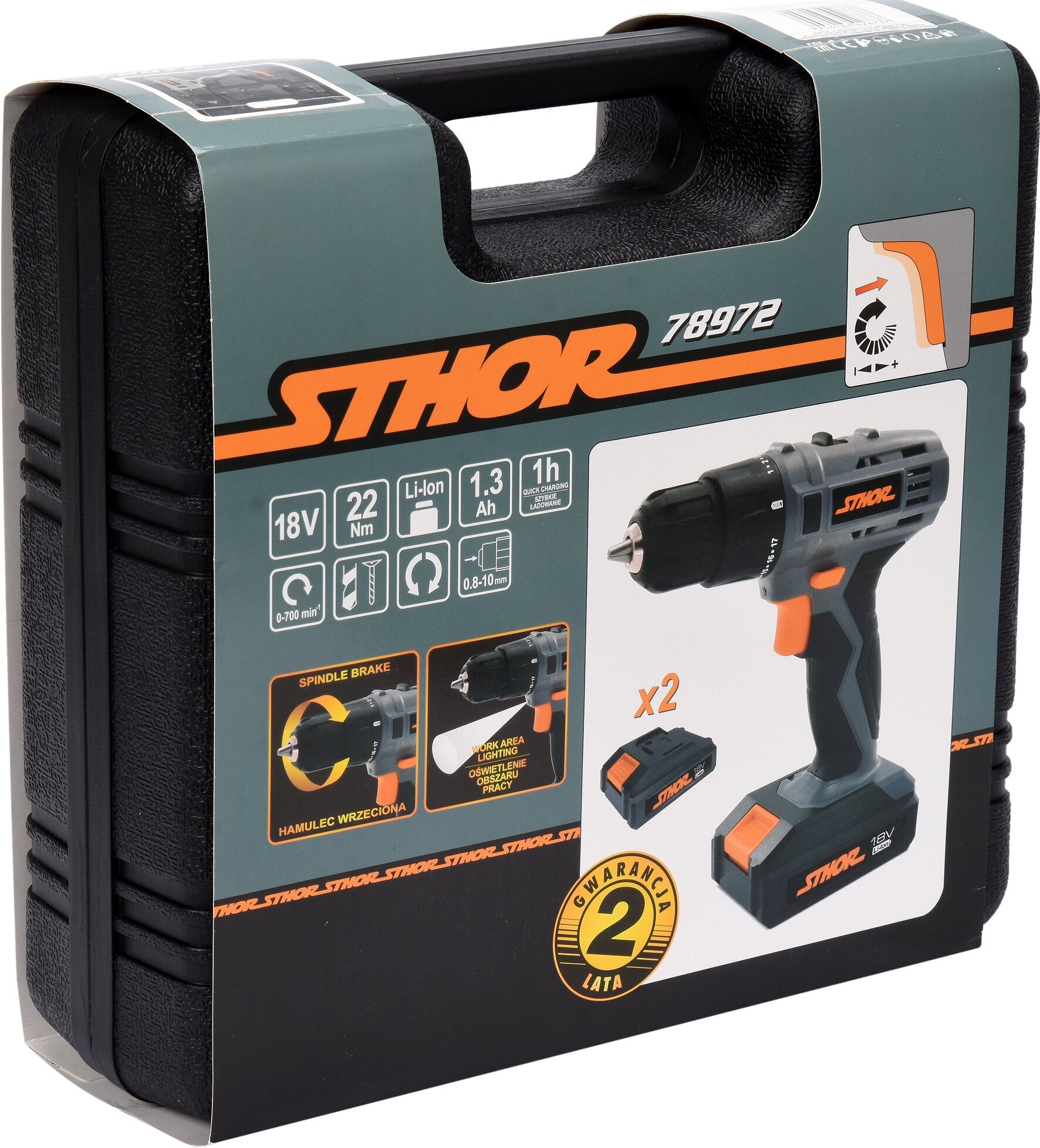 Package contents: Drill-driver Battery Charger Drills - 6 pcs Nozzles - 6 pcs Extension Cord Case