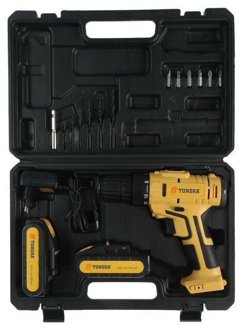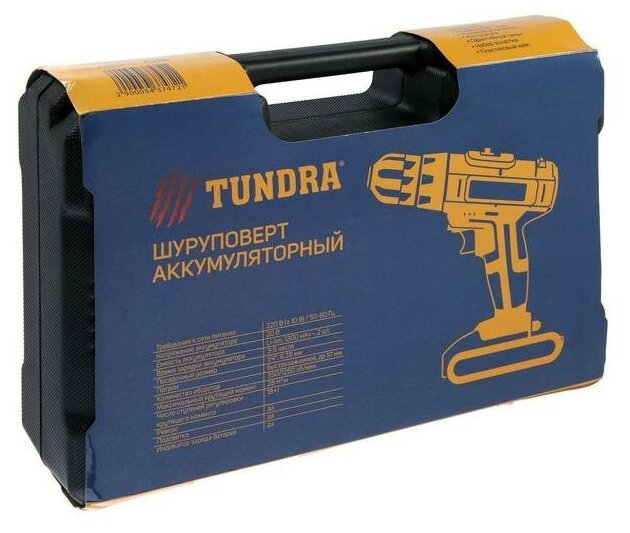 TUNDRA TUNDRA, cartridge BZ up to 10 mm, LED, 2 х Li-ion 1.3 Ah 20V, 350/1250 rpm, 28 N*m