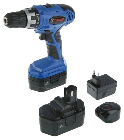 Two batteries, charger, bits 6 pcs., drills 6 pcs., case