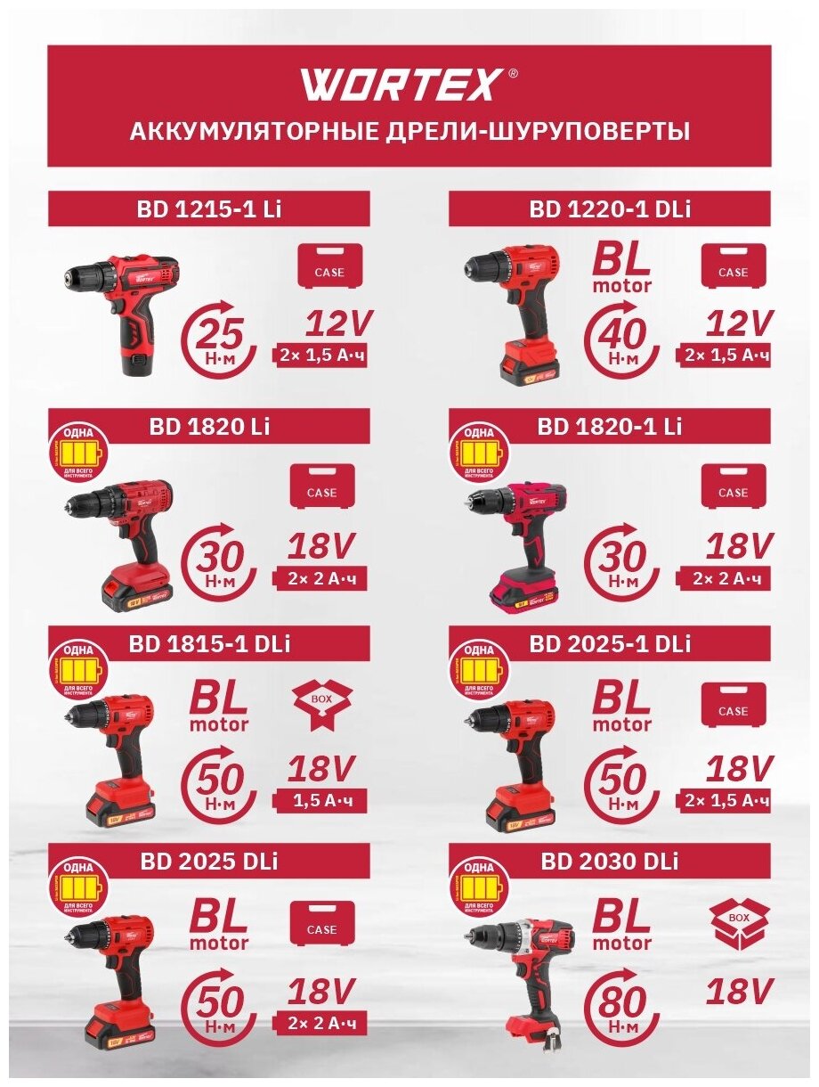 Battery - WORTEX BD 2025 DLi in what. 18.0 V, BRUSHLESS, 2 batteries, 2.0 Ah Li-Ion, 2 speeds, 50 Nm, screws up to 9 mm BD2025DLi1029