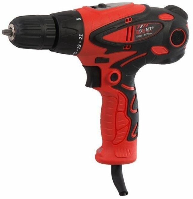 Power supply: from the mains, maximum torque: 19 Nm, number of batteries included: without battery, power consumption: 550 W, chuck type: keyless, packaging: box, weight: 1.50 kg, number of speeds