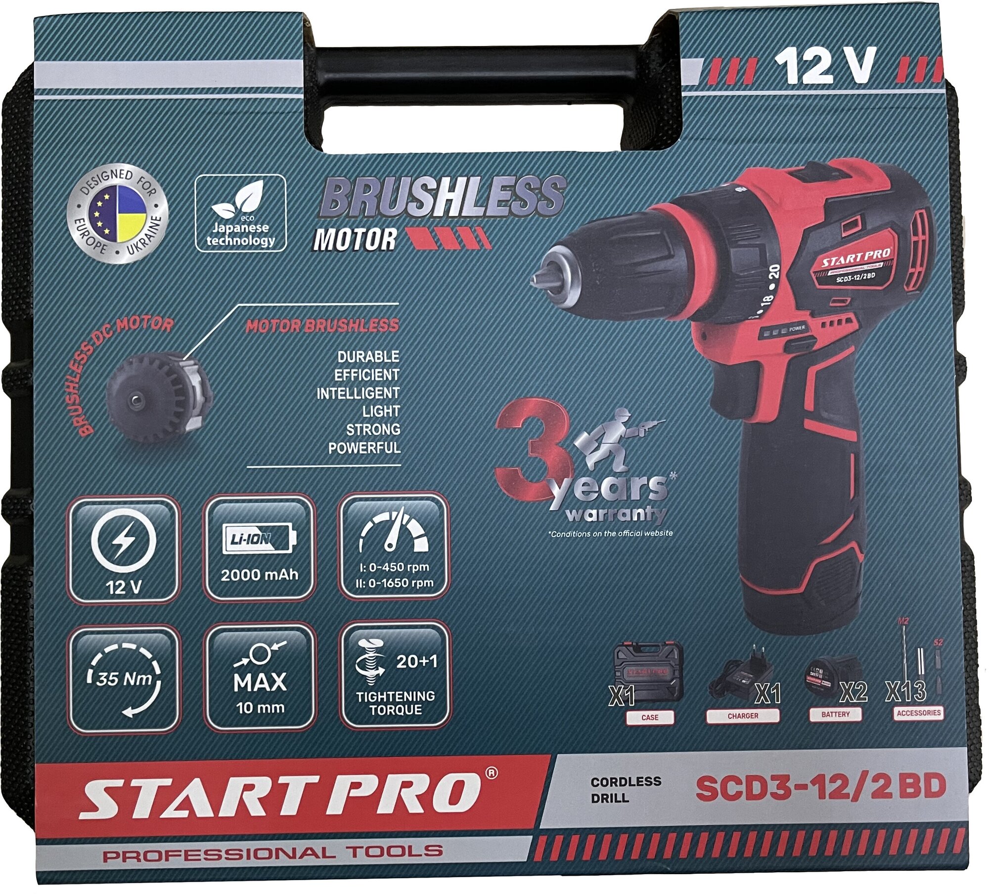 Power supply: battery, battery voltage: 12 V, maximum torque: 35 Nm, number of batteries included: 2, impact, brushless motor, battery capacity: 2 Ah, chuck type: fast