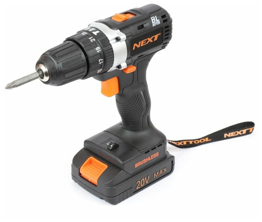 Power supply: battery, battery voltage: 20 V, maximum torque: 40 Nm, number of batteries included: 1, battery capacity: 2 Ah, chuck type: keyless, max. drilling diameter metal