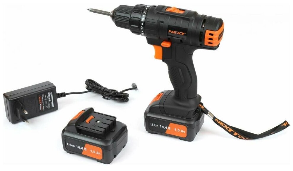 Cordless drill driver; 2 batteries; Charger; Bat; Manual; Plastic case.