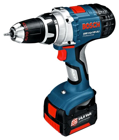 Locking the power button, a socket in the housing for attaching bits, a spotlight