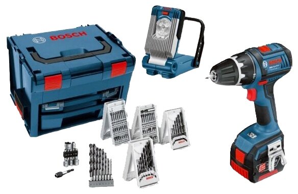 Two batteries, a charger, a set of nozzles 77 pcs., a flashlight, a case LS-BOXX