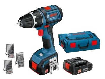 Two batteries, charger, set of drills and bits 39 pcs., L-BOXX case