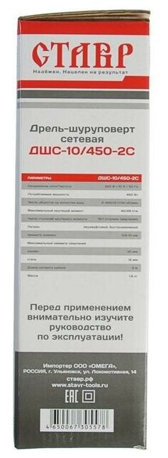 Drill driver Stavr DShS-10/450-2S, mains, 450 W, 400/1100 rpm, 40/28 Nm + gift