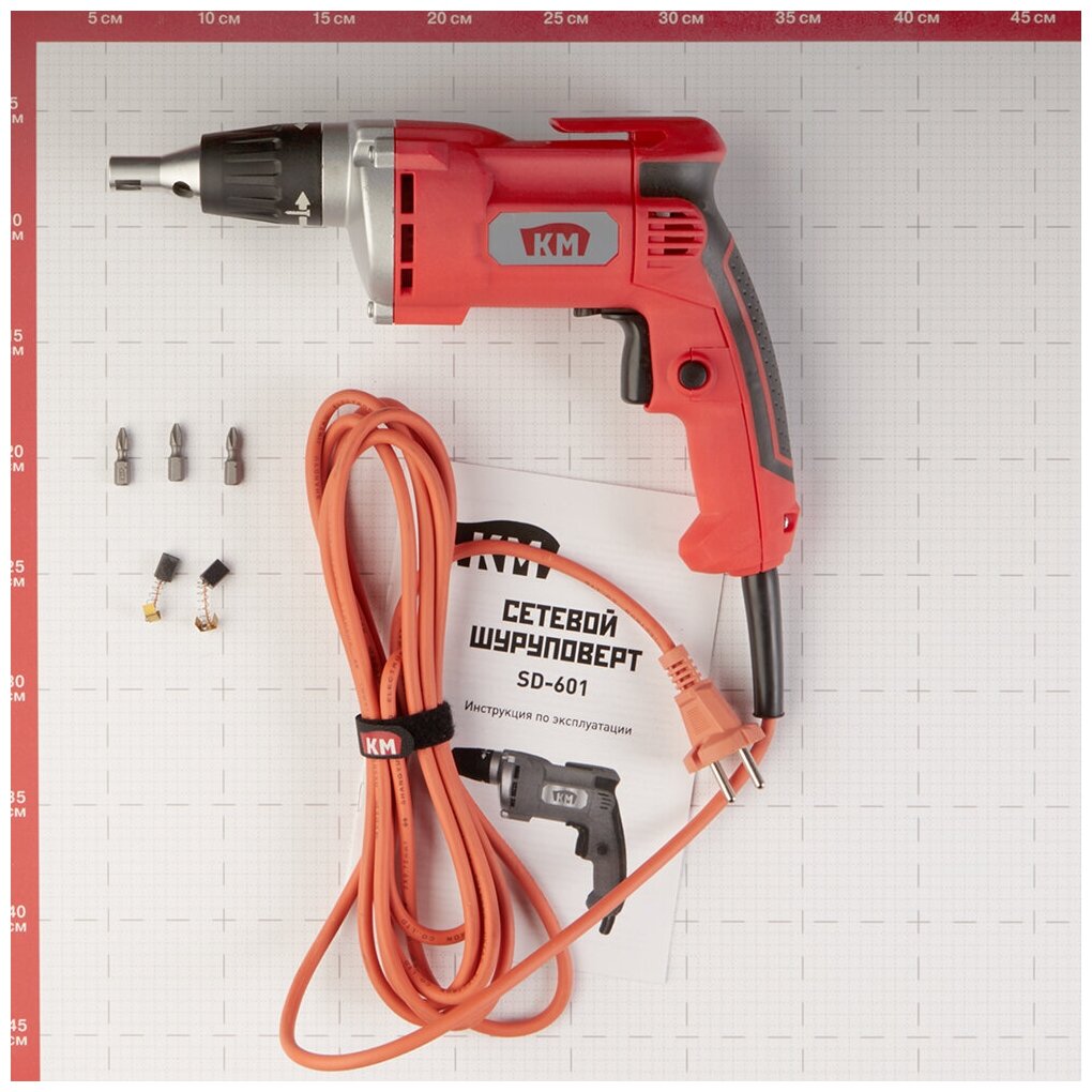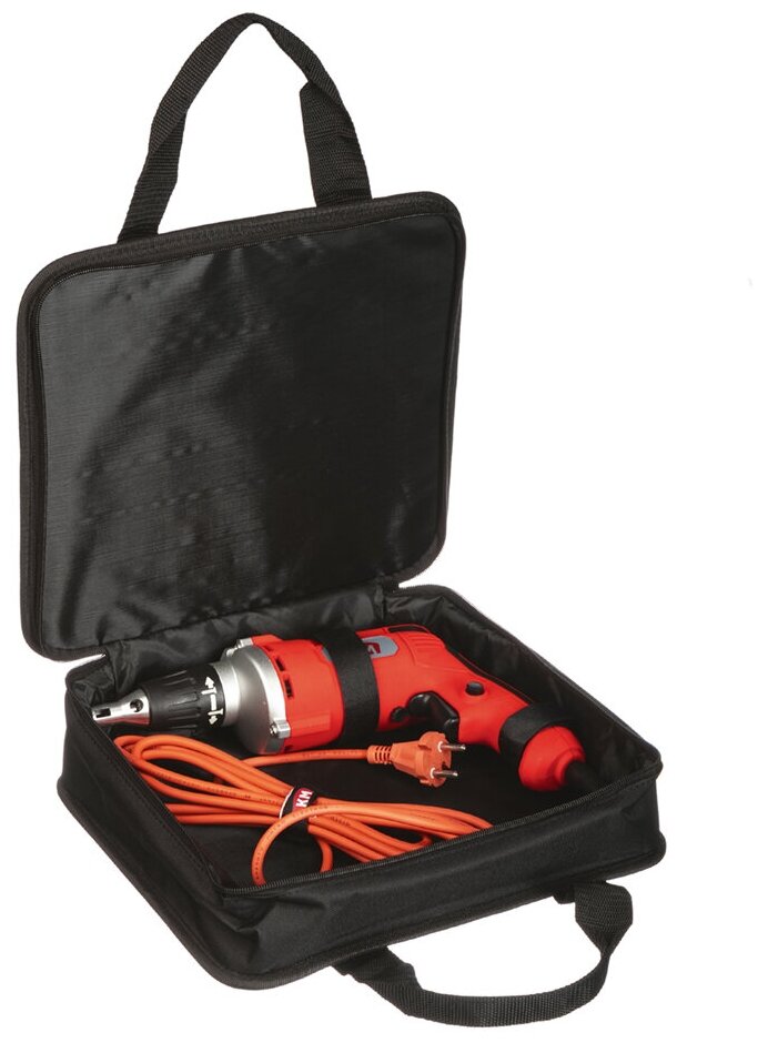 Screwdriver, bit 25 mm PH2 - 3 pcs., cable clamp - 1 pc., bag - 1 pc., spare carbon brushes - 1 pc.