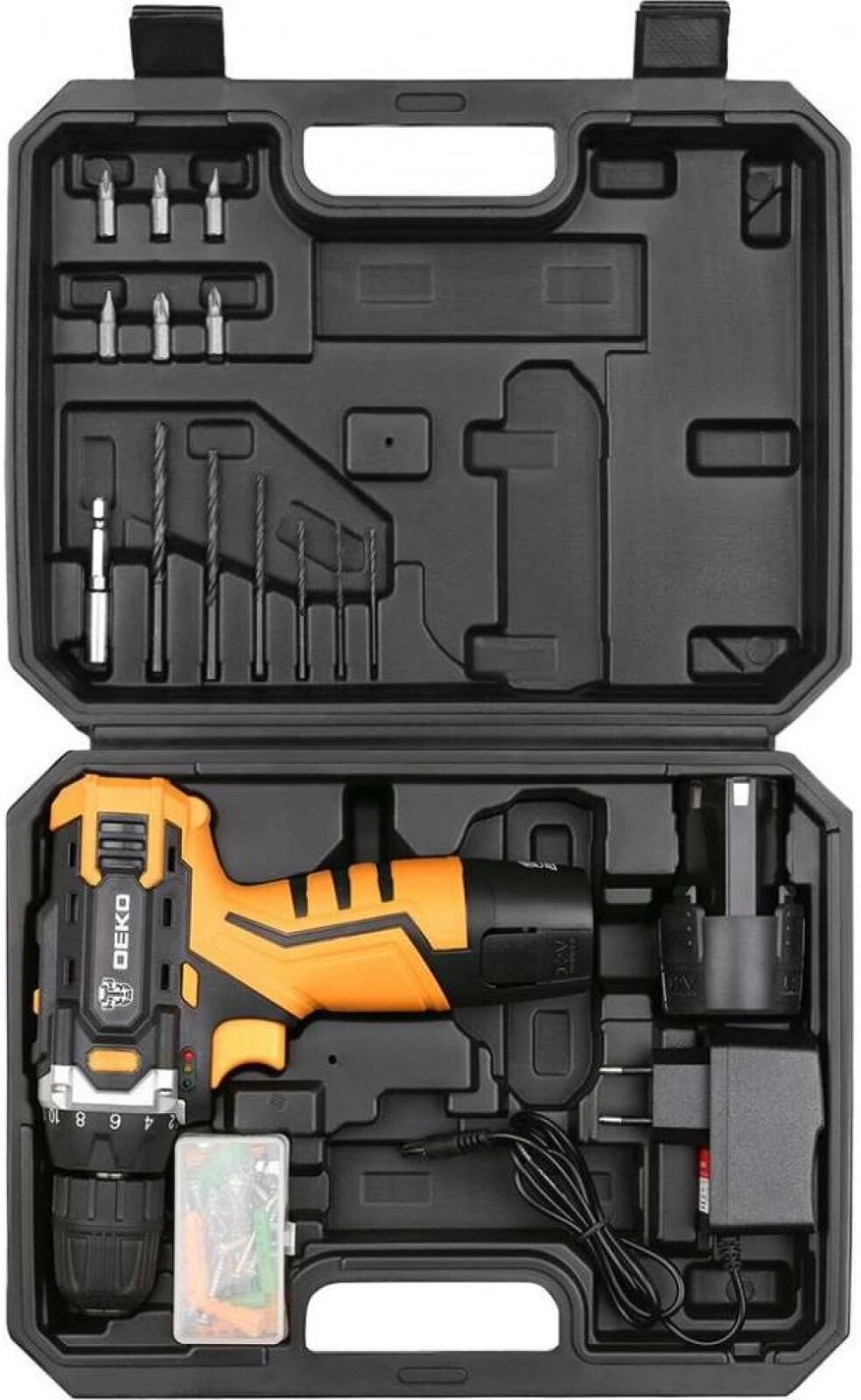 Cordless drill driver DEKO DKCD12FU-Li Li-Ion 1.5 Ah 12 V x2 case set 28 Nm