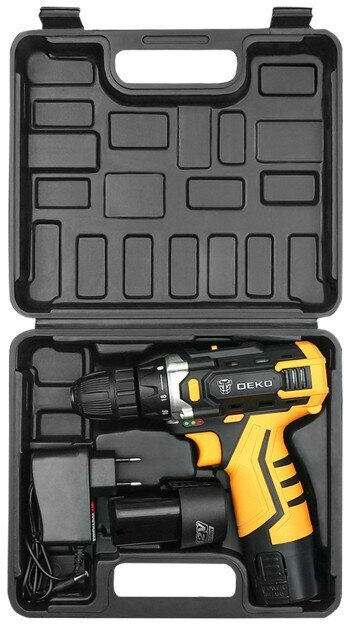 Drill driver DEKO Banger 12V, battery 2 Ah, charger, instructions