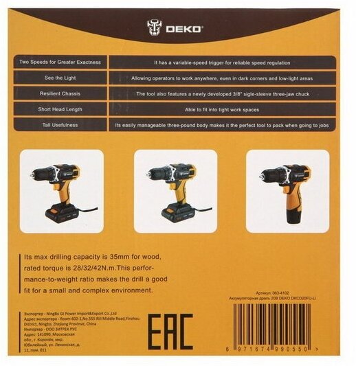 Drill driver DEKO DKCD20FU-Li 1.5Ah
