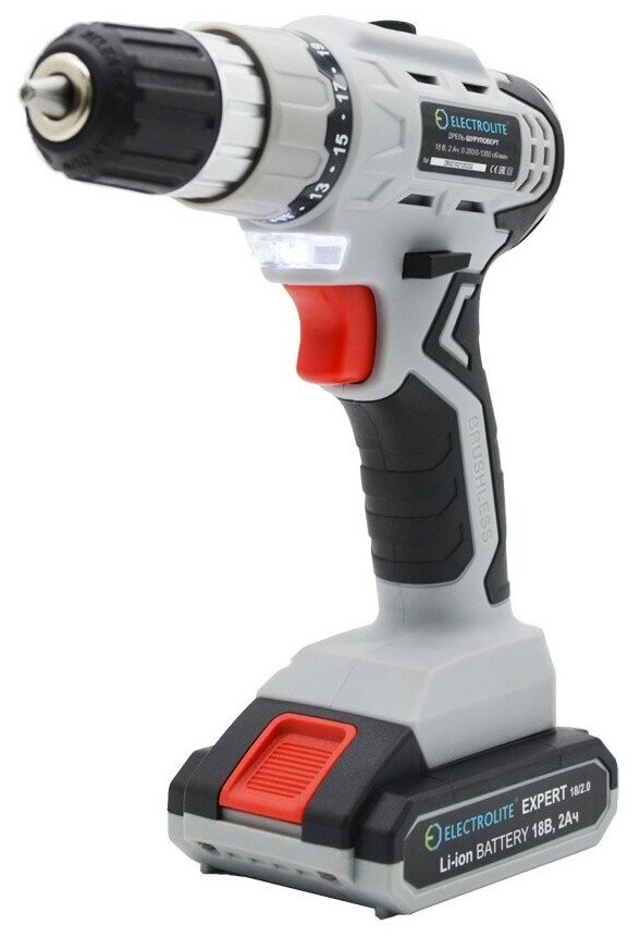 Acc. ELECTROLITE Expert 18/2.0 BL Brushless, Li-ion, 18V, 2Ah, idle 0-350/0-1350 rpm, 2 speeds, 2 ac, backlight