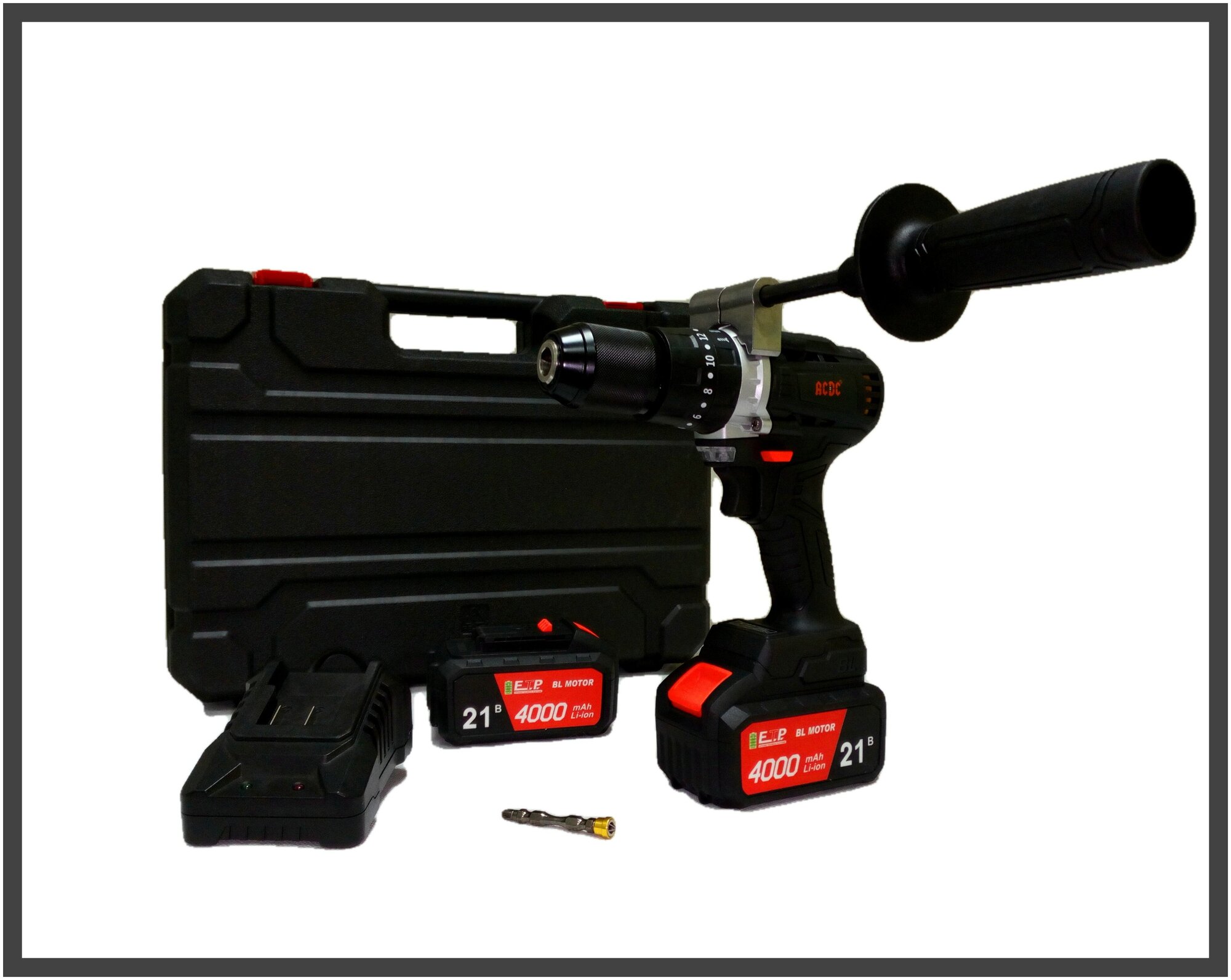 Screwdriver, 2 batteries -4Ah, Charger, Professional bit, Additional side handle