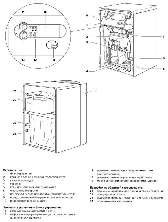 Type of heating boiler: gas, max. thermal power: 25 kW, number of circuits: single-circuit, location: floor, fuel: natural gas, liquefied gas, type of combustion chamber: open, type of power supply: single-phase, at