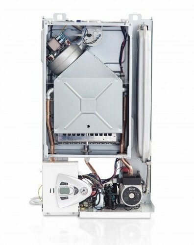 Built-in expansion tank, built-in circulation pump, pressure gauge, thermometer