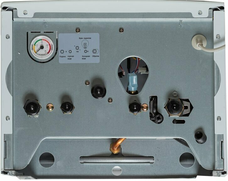 Built-in expansion tank, built-in circulation pump, pressure gauge, external control connector, thermometer