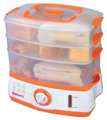 Number of tiers: 3, features: auto-off by timer, adding water during cooking, timer, design features: power indicator, water level indicator, compact storage, compartment for power cord