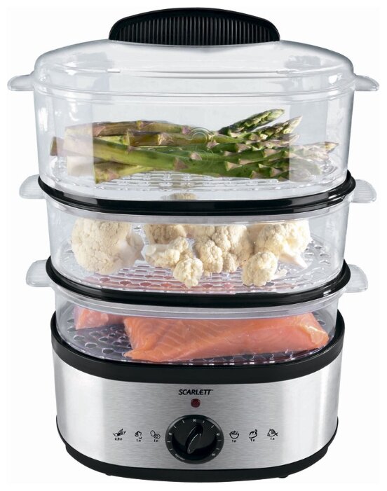 Number of tiers: 3, features: auto-off by timer, sound signal at the end of cooking, shutdown in case of lack of water, timer, design features: power indicator, compact storage, mat