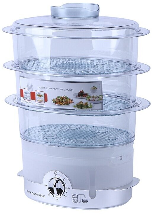 Number of tiers: 3, features: auto-off by timer, adding water during cooking, audible signal about the end of cooking, timer, design features: power indicator, water level indicator,