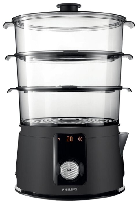 Number of tiers: 2, features: auto-off by timer, adding water during cooking, timer, design features: power indicator, water level indicator, compact storage, removable grids, bowl