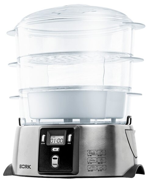 Number of tiers: 3, additional functions: auto-cooking, features: auto-off by timer, adding water during cooking, shutdown in case of lack of water, delay start, timer, design features