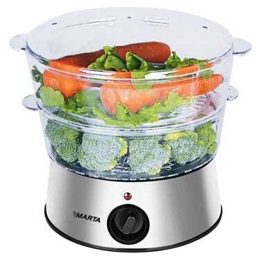 Number of tiers: 2, features: automatic shutdown by timer, shutdown when there is not enough water, timer, design features: power indicator, rice bowl, steam basket material: transparent plastic, max.