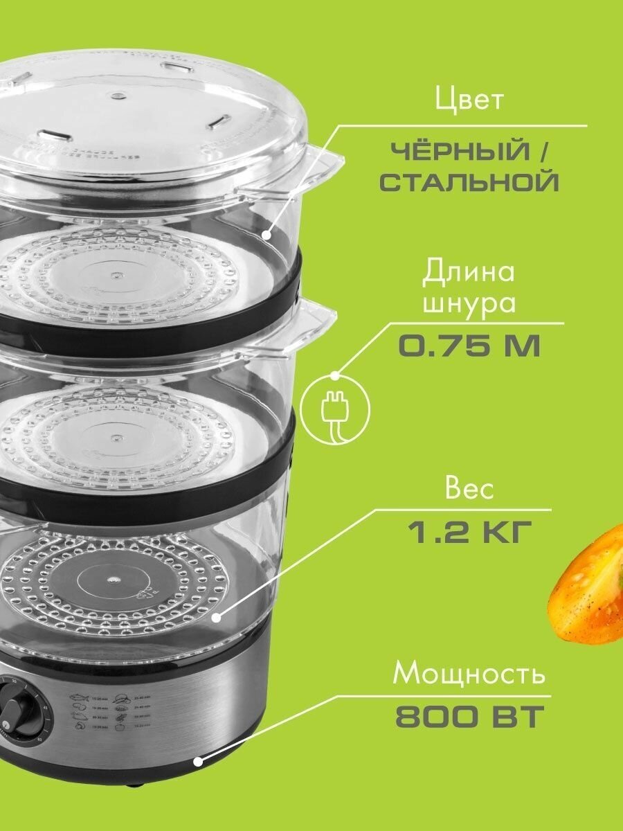 Number of tiers: 2, features: auto-off by timer, adding water during cooking, timer, design features: power indicator, water level indicator, compact storage, removable grids, bowl