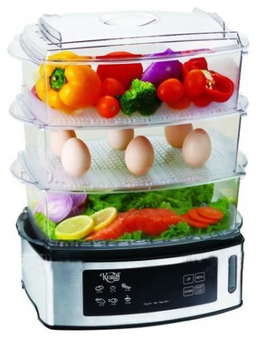 Number of tiers: 2, features: auto-off by timer, adding water during cooking, timer, design features: power indicator, water level indicator, compact storage, removable grids, bowl