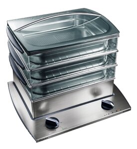 Number of tiers: 3, additional functions: auto-cooking, features: auto-off by timer, audible signal at the end of cooking, shutdown in case of lack of water, timer, steam basket material: stainless steel