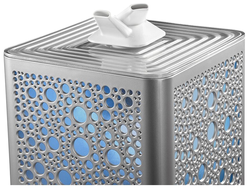 Type: air humidifier, room area: 50 m², type of humidifier: ultrasonic, additional functions: UV lamp, aromatization, ionization, heating, filters: demineralizing cartridge, water tank volume: 6.30 l,