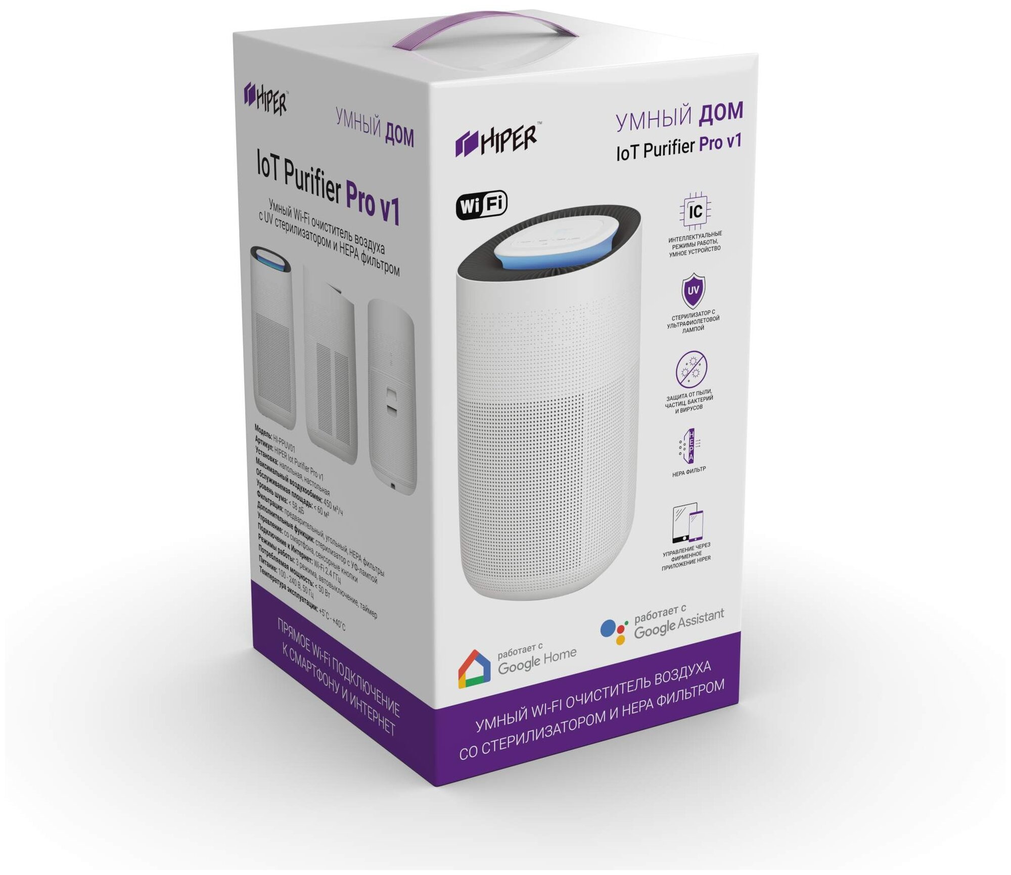 Type: air purifier, room area: 60 m², additional functions: UV lamp, filters: HEPA filter, pre-filter, carbon, installation: floor, tabletop, features: timer, cleaning performance