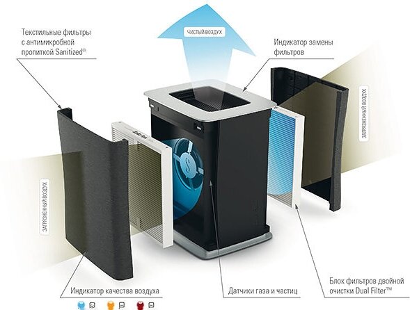 Type: air purifier, room area: 40 m², additional functions: ionization, filters: HEPA filter, pre-filter, carbon, installation: floor standing, features: display, fan speed control / and�