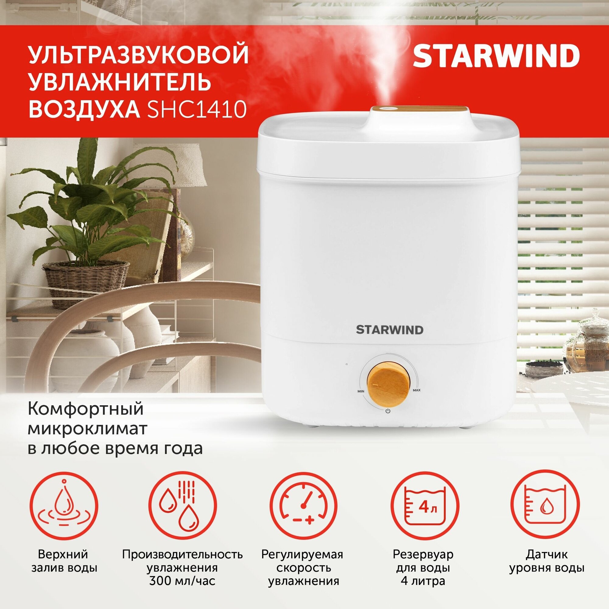 Type: air humidifier, room area: 30 m², humidifier type: ultrasonic, water tank volume: 4 l, water flow: 350 ml/h, installation: floor, desktop, features: humidifier, control: mechanical,