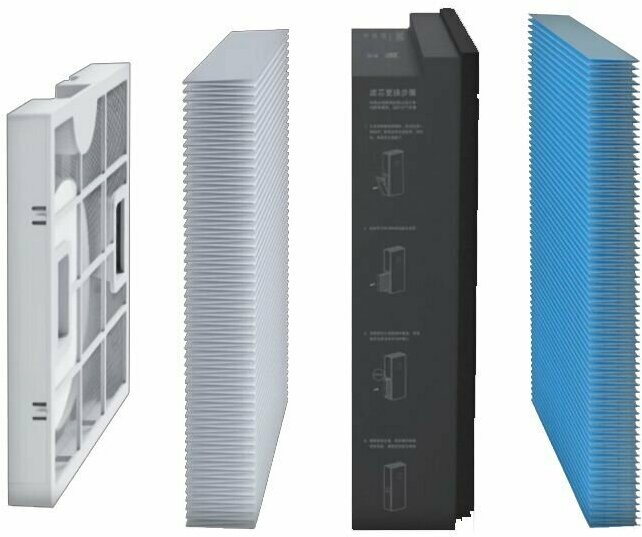Switching on, filter clogging, air pollution, Air quality analyzer, Air quality analyzer, Hygrometer, Hygrometer, Temperature sensor, Temperature sensor, Filter contamination indicator, Indicato