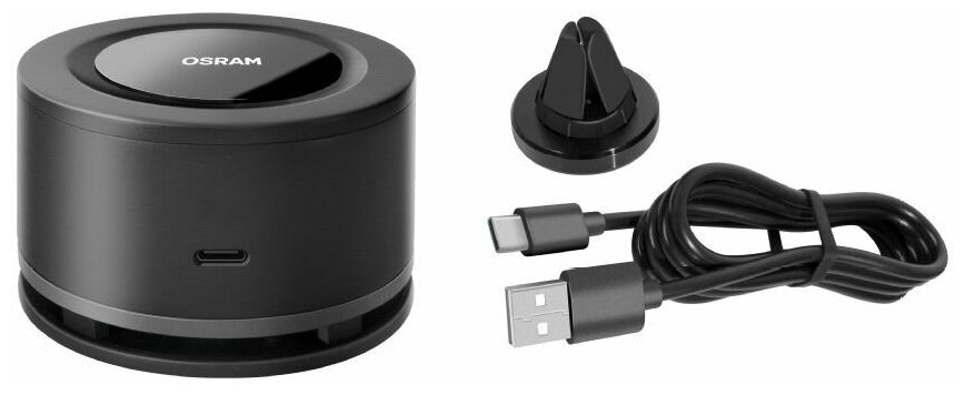 Air disinfector. Magnetic holder. USB Type C cable. Instructions.