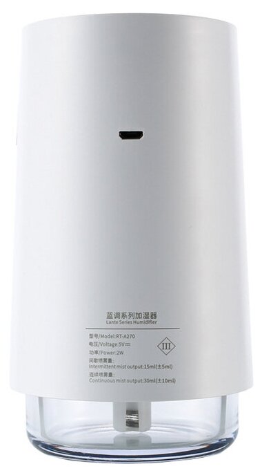 Type: air humidifier, room area: 20 m², type of humidifier: ultrasonic, additional functions: aromatization, water consumption: 250 ml/h, installation: desktop, control: electronic
