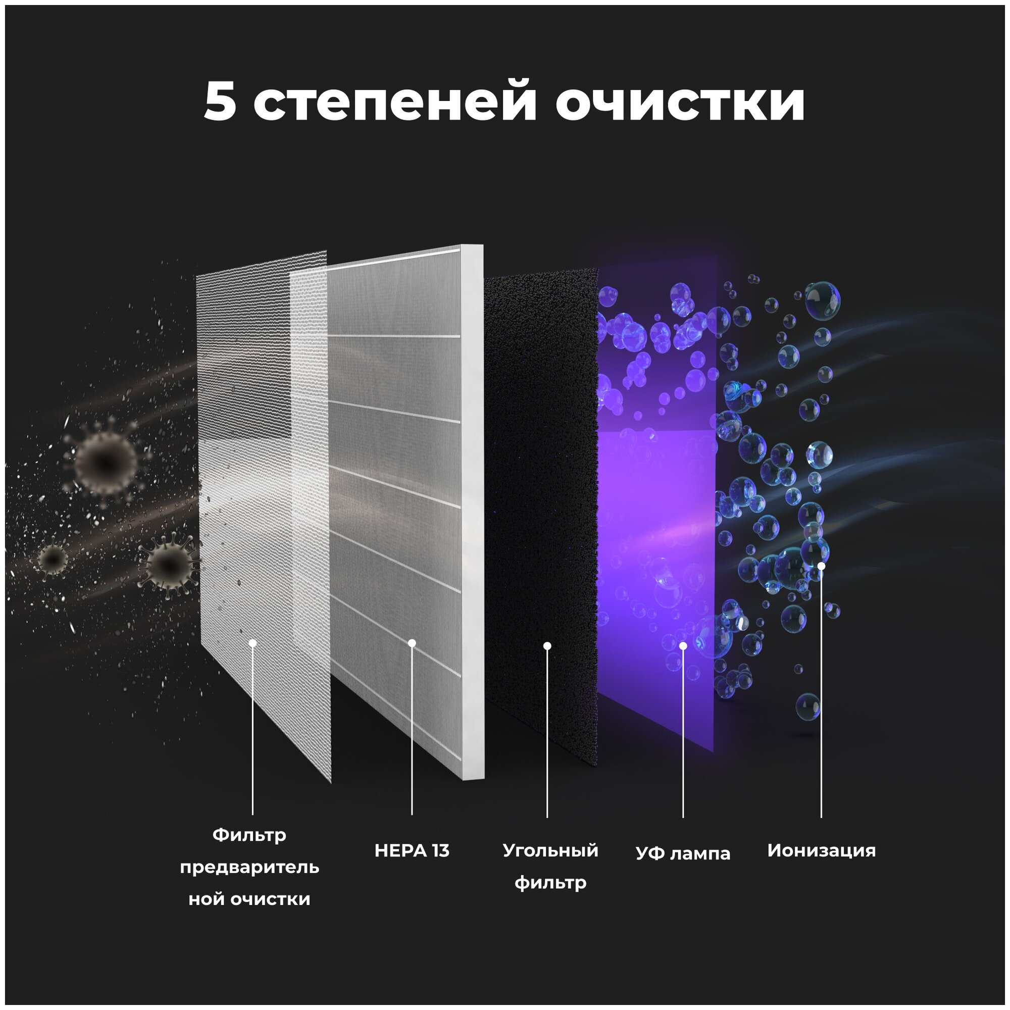 HEPA filter, pre-filter, carbon