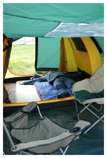 Color: green, beige; compression bag, removable floor; number of guy lines: 12