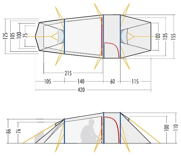| Inner tent dimensionsLxWxH: |
