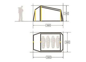 Purpose: camping, number of places: 4, features: UV protection, ventilation holes, wind / snow skirt, inside pockets, inner tent, canopy, taped seams, assembly type: outer frame