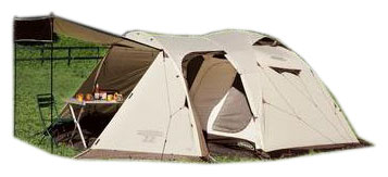 Purpose: camping, number of places: 4, features: UV protection, ventilation holes, wind / snow skirt, inside pockets, inner tent, canopy, taped seams, assembly type: outer frame