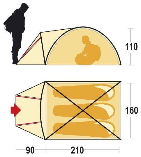 Purpose: camping, number of places: 4, features: UV protection, ventilation holes, wind / snow skirt, inside pockets, inner tent, canopy, taped seams, assembly type: outer frame