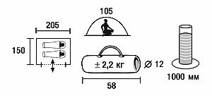 205x150x105 cm