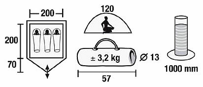 Purpose: trekking, number of places: 3, features: ventilation holes, inner tent, taped seams, assembly type: outer frame, awning water resistance: 1000 mm w.c. st., number of rooms: 1, number of rooms