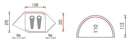 Purpose: extreme, number of seats: 2, features: UV protection, ventilation holes, wind/snow protection skirt, inner pockets, inner tent, welded seams, build type: inner frame,