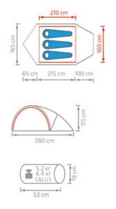 Purpose: camping, number of places: 3, features: UV protection, ventilation holes, inner tent, assembly type: inner frame, tent water resistance: 6000 mm w.c. Art., number of rooms: 1, number of vestibules