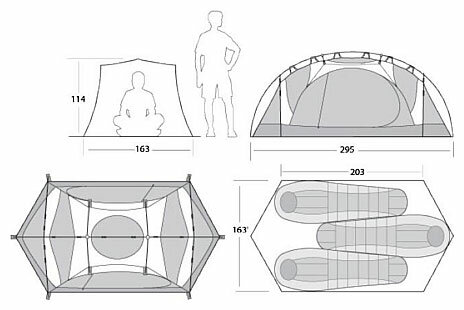 Purpose: camping, number of places: 4, features: UV protection, ventilation holes, wind / snow skirt, inside pockets, inner tent, canopy, taped seams, assembly type: outer frame