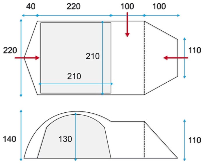 Purpose: trekking, number of places: 4, features: air vents, inner tent, assembly type: inner frame, tent water resistance: 3000 mm w.c. Art., number of rooms: 1, number of vestibules: 2, weight: 4.
