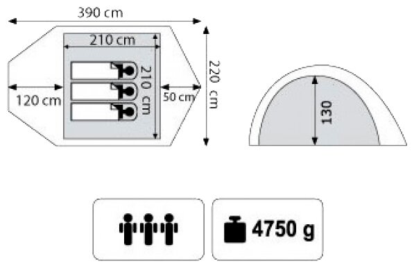 Purpose: camping, number of places: 4, features: UV protection, ventilation holes, wind / snow skirt, inside pockets, inner tent, canopy, taped seams, assembly type: outer frame